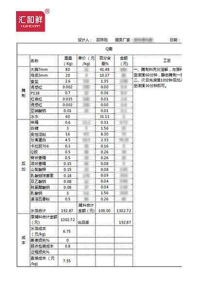 深圳汇和鲜生物科技有限公司始终以技术服务为核心,帮助客户开发新产品、升级改造旧产品,为客户培训技术人员,并提供生产工艺、设备选型、产品开发辅导等增值服务。与青岛农业大学等打造校企研发平台,荣获专利无数。同时,针对新型餐饮领域,与中烹协、青岛市餐饮协会合作,建立了中央厨房研发中心,为餐饮企业提供食品配方、加工工艺、储存保鲜等一揽子解决方案。
